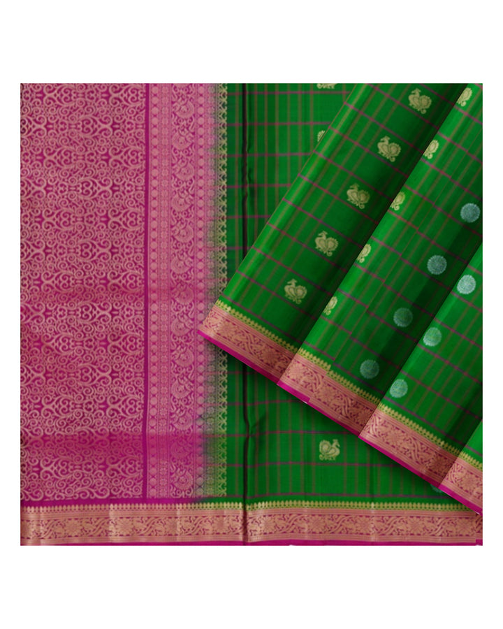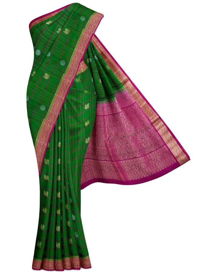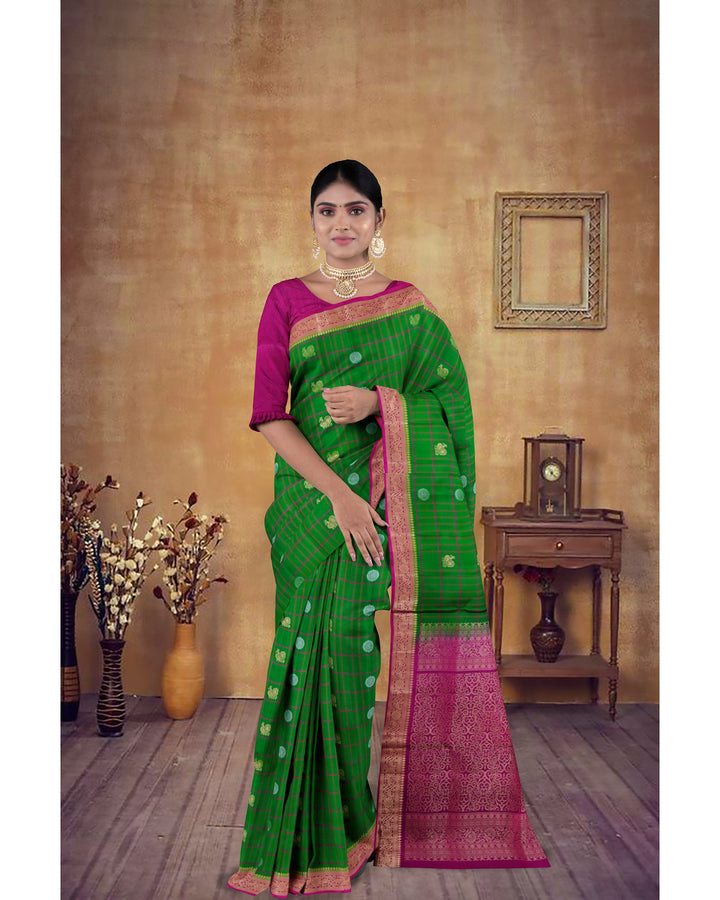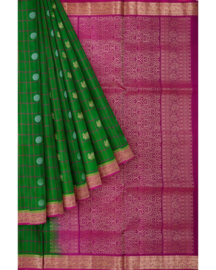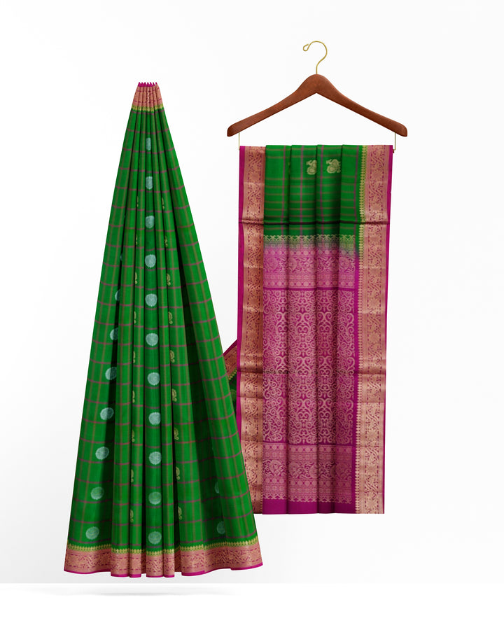 Handloom Soft Silk Saree Racing Green with Velvet Maroon pallu
