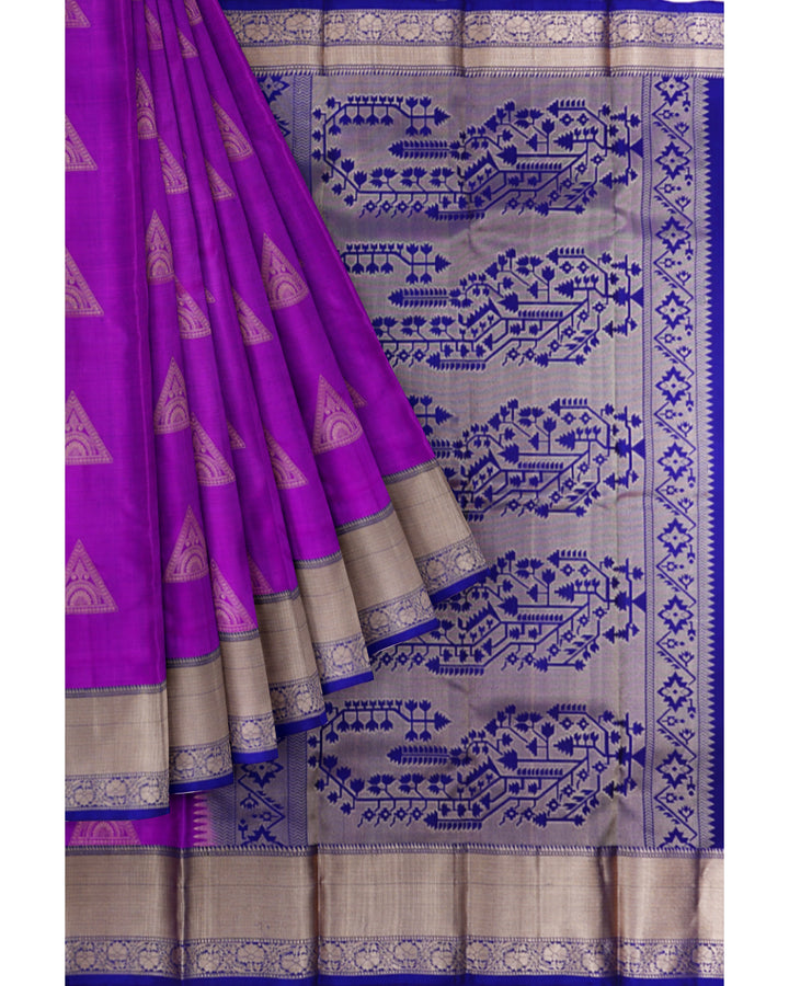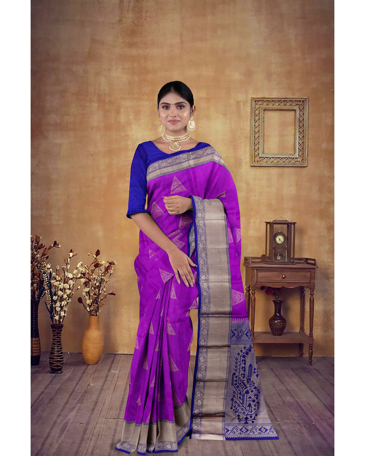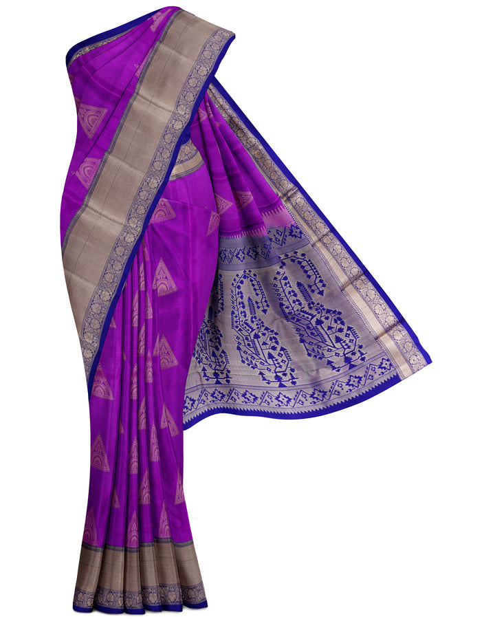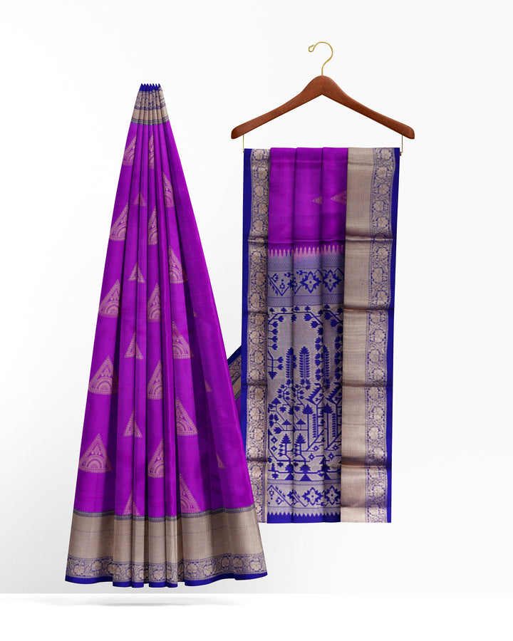 Handloom Soft Silk Saree Purple Iris with Dark Blue pallu