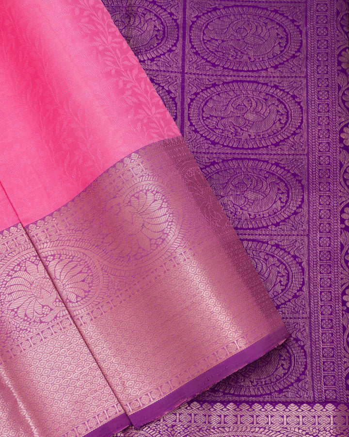 KANCHIPURAM TRADITIONAL SILK SAREE PINK COLOUR