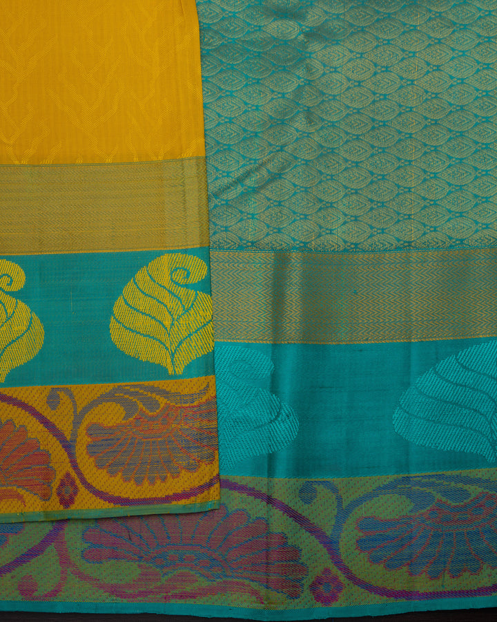 BEE YELLOW COLOUR KANCHIPURAM TRADITIONAL SILK SAREE