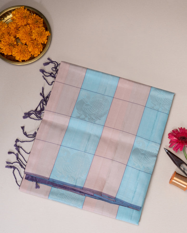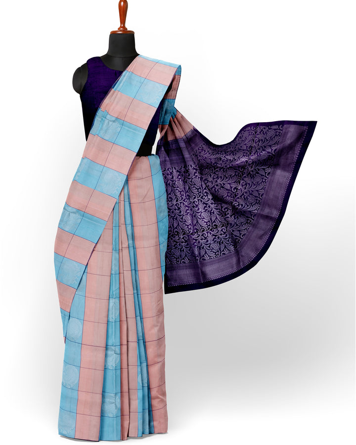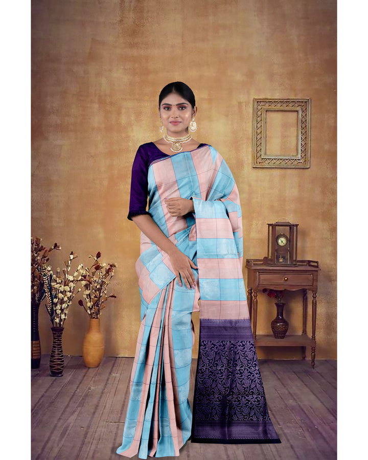 SKY BLUE WITH PURPLE COLOUR SOFT SILK SAREE