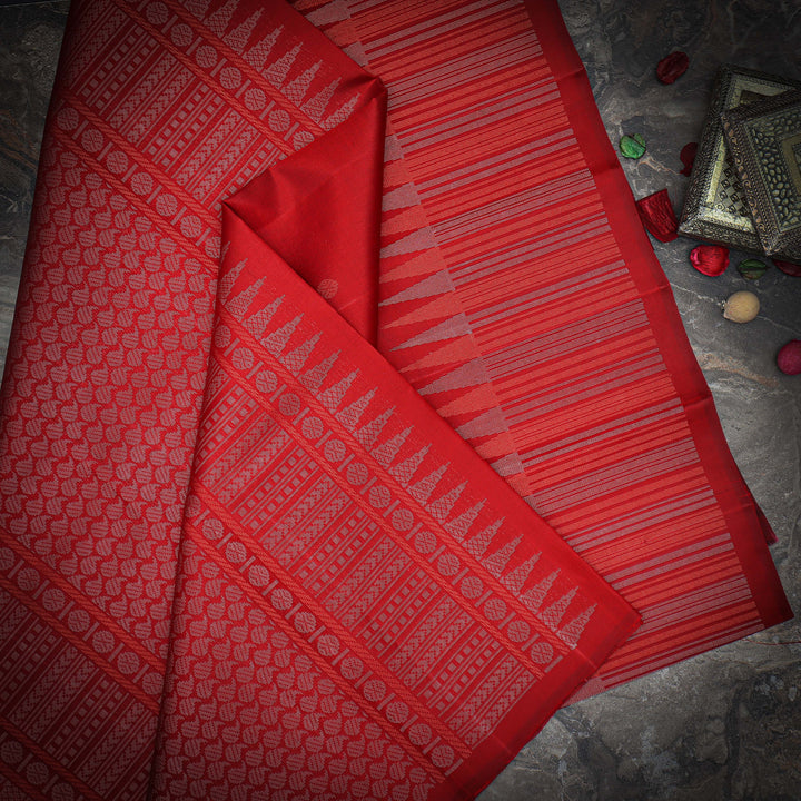 Vibrant and Eye-catching: Red is a bold and attention-grabbing color. A red soft silk saree instantly catches the eye and makes a powerful statement. It exudes confidence and charisma, making it a great choice for special occasions.