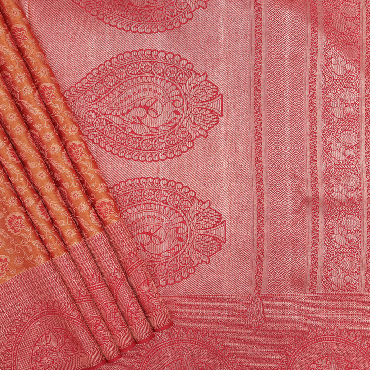 In many cultures, orange is associated with auspiciousness, joy, and new beginnings. Wearing an orange silk saree for a wedding can symbolize good luck, happiness, and the start of a new chapter in life.Orange is a bold and lively color that exudes energy and enthusiasm. It is an excellent choice for a festive occasion like a wedding, as it brings a sense of joy and celebration.