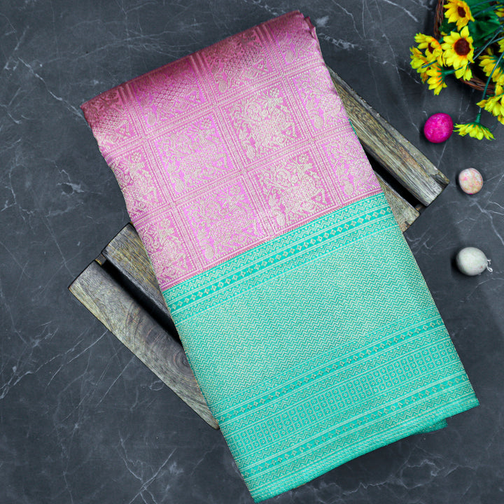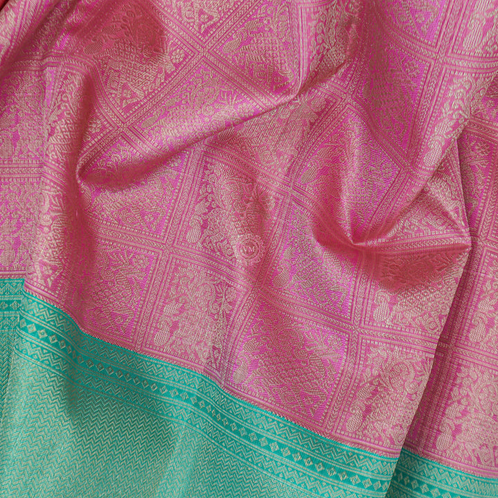 VM23063093 Pink with Cyan kanchipuram wedding silk saree