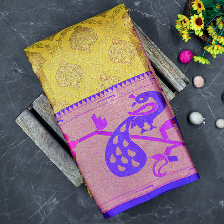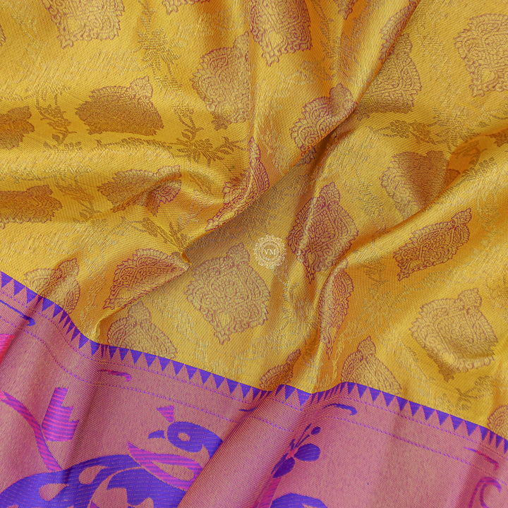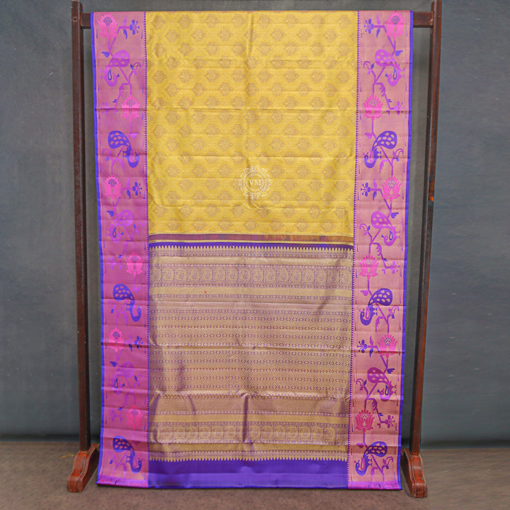 VM23074232 Yellow with Violet blue kanchipuram wedding silk saree