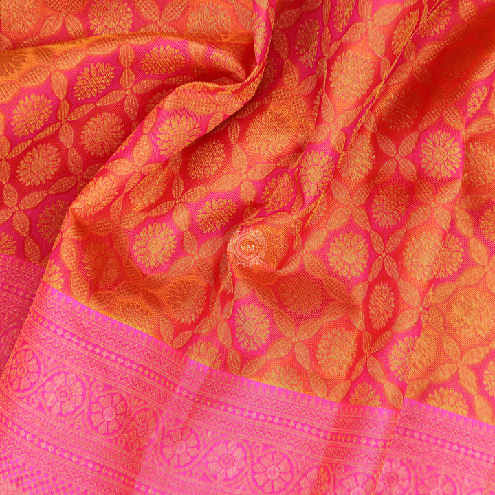 VM23074250 Orange with Pink kanchipuram wedding silk saree