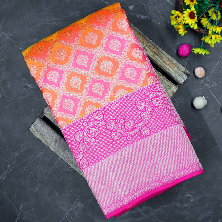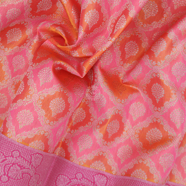 VM23074254 Orange yellowish with Violet kanchipuram wedding silk saree