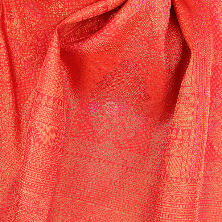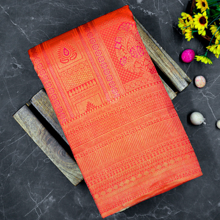 VM23075 Dark orange with Light red kanchipuram wedding silk saree